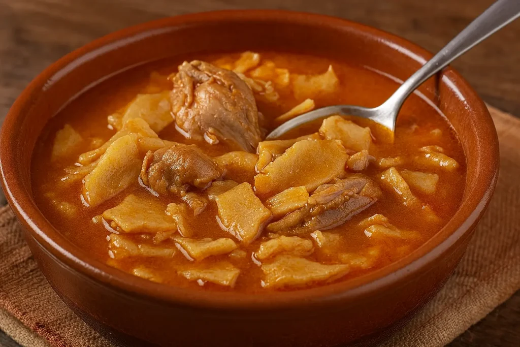 Season with salt and pepper, carefully mix in the tortas cenceñas. Leave to soak for 3 or 4 minutes and serve.